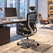 Assento em tela de alta performance Okamura. Assento possui regulagem de profundidade.