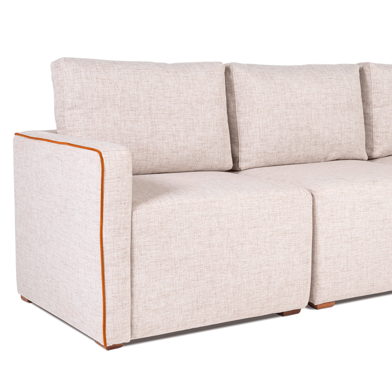 Sofá modular 3 lugares Cora garante conforto e versatilidade em um só design. Assento macio, almofada solta com fibra siliconada, apoio de braços estofado, com pés em madeira que garantem resistência e elegância. Ver mais informações sobre o produto